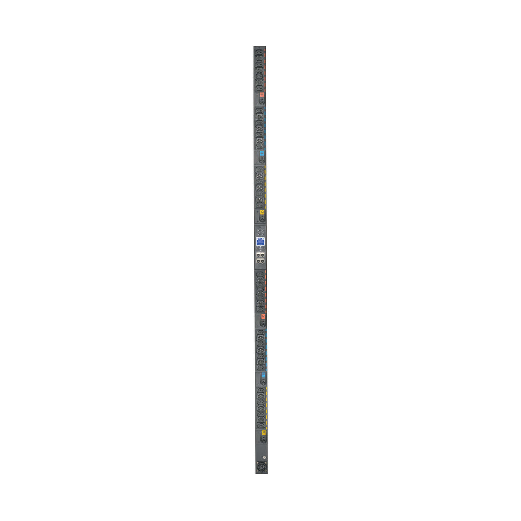 The Eaton EVMOGU23X is a universal-input, metered-outlet Rack PDU (UPDU) G4 that supports single- and three-phase power configurations from 5kW to 23kW, making it ideal for modern, scalable data center environments. With 42 outlets—24 C13 and 18 high-retention C39—the unit accommodates diverse equipment and reduces the need for multiple PDUs. Its embedded Gigabit Network Module (GNM) enables real-time power monitoring, advanced cybersecurity features, and remote management. Designed for vertical 0U installation, this space-saving PDU offers global compliance, robust outlet-level metering, color-coded load banks, and front-entry cord access.