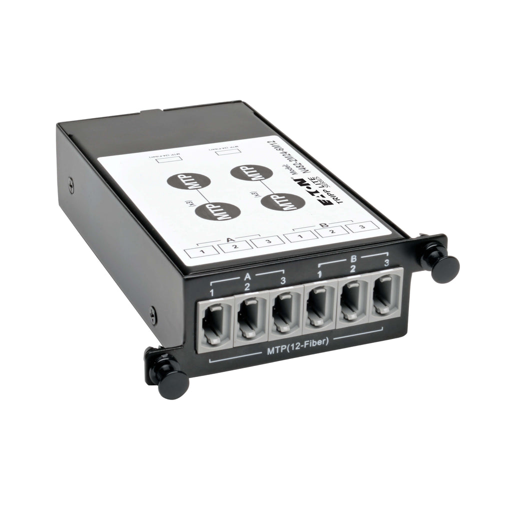 The Eaton Tripp Lite N482-2M24-6M12 is a high-density fiber breakout cassette engineered for efficient and scalable high-speed data center connectivity. Designed to convert 100/120Gb connections into 40Gb breakout configurations, this cassette features (2) 24-fiber MTP/MPO (male with pins) connections on the input side and (6) 12-fiber OM4 MTP/MPO (male with pins) connections on the output side.