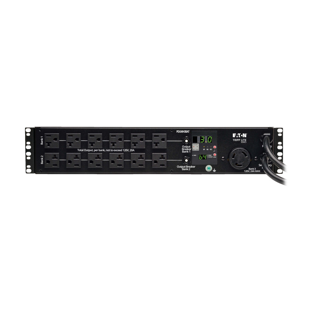 Featuring solid-state transfer technology, a local digital power meter, and 25 total outlets, the PDUMH30AT is ideal for data centers, network closets, and mission-critical installations. Its 2U horizontal rackmount design, dual L5-30P inputs, and TAA compliance make it a dependable solution for enterprise and government deployments.