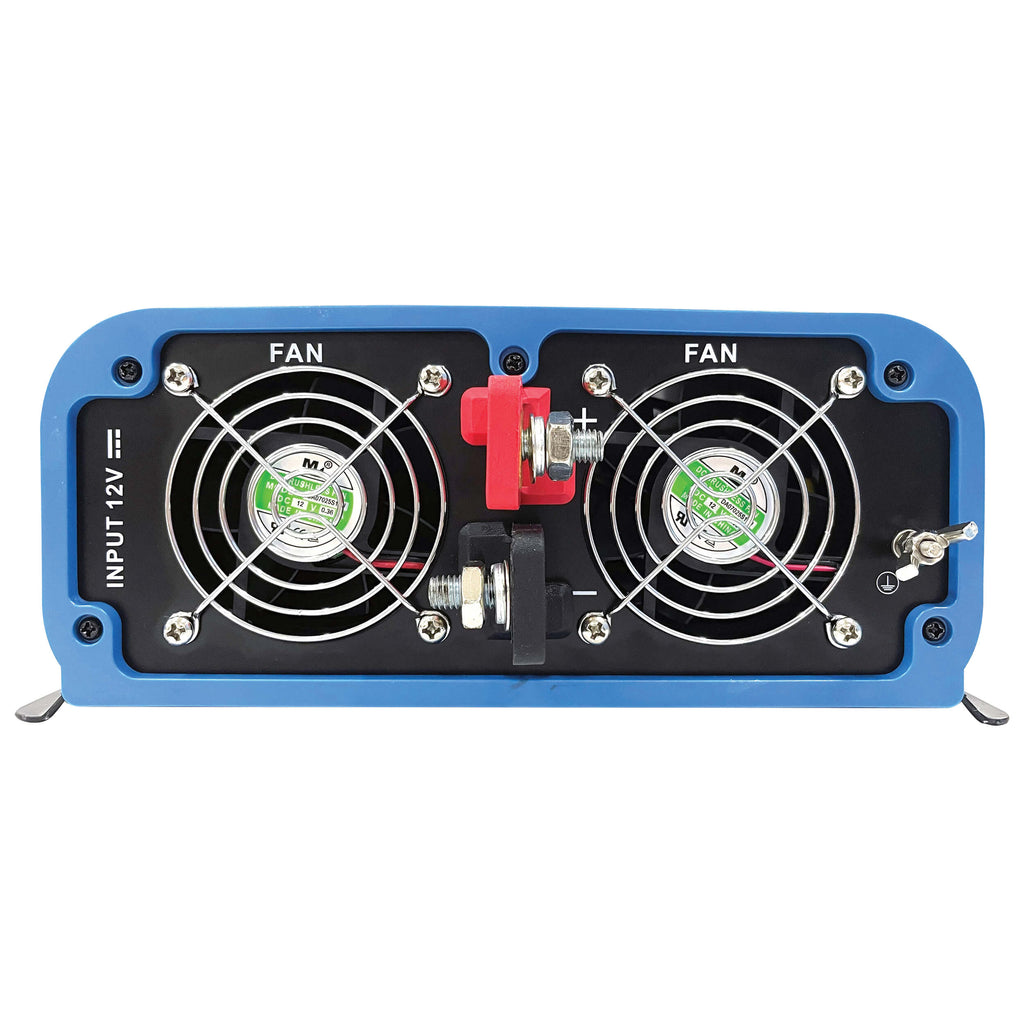 Designed for durability, the aluminum housing includes temperature-controlled cooling fans, overload protection, low-voltage shutdown, and audible alarms for fault conditions. A wired remote control with a 20-foot cable allows convenient on/off operation from inside the vehicle cab, making the PINV3000SWL-120 a reliable power solution for demanding mobile and remote environments.