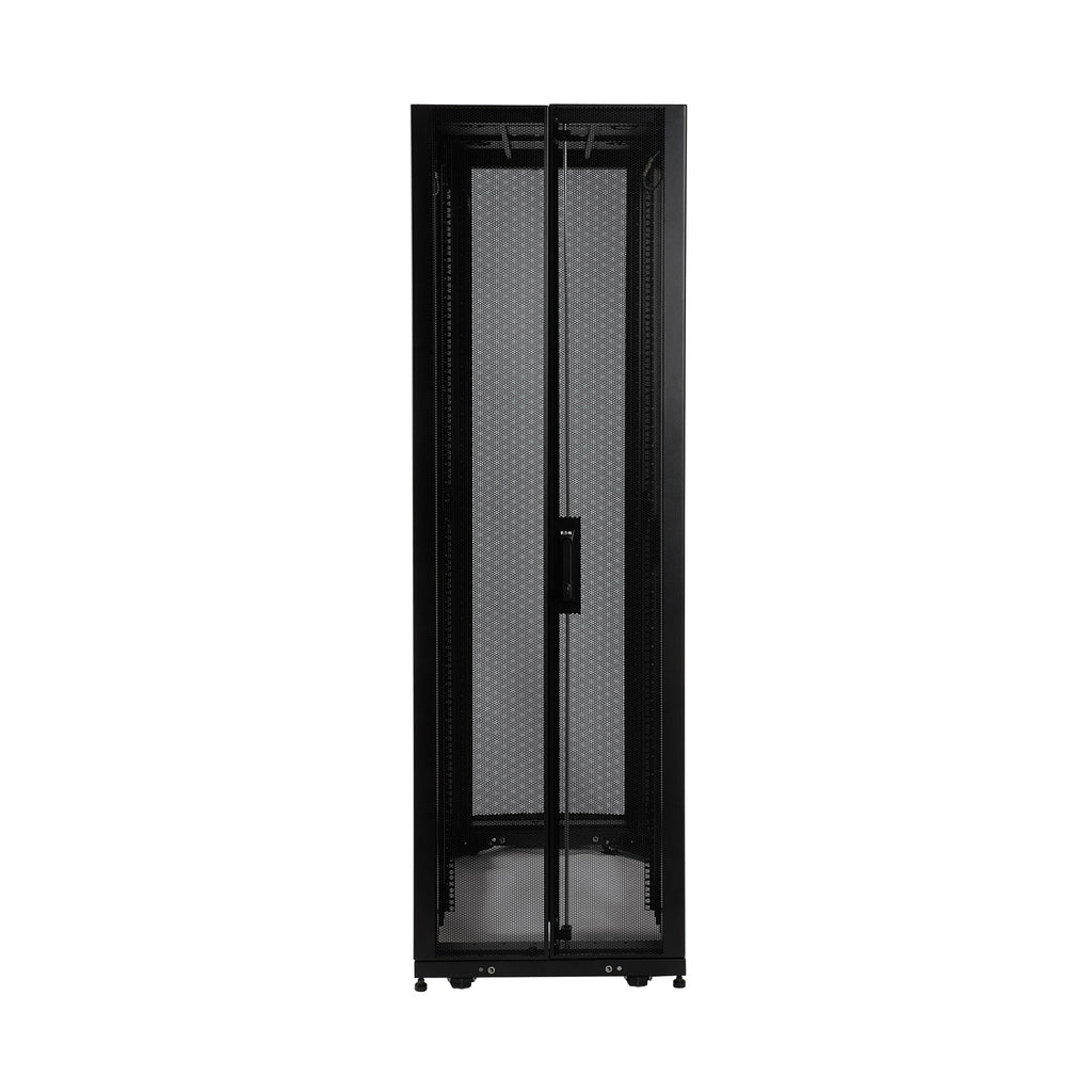 Engineered with EIA-310-D compliant 19-inch mounting compatibility, this cabinet supports up to 3,500 lbs (1,588 kg) stationary and 2,250 lbs (1,021 kg) rolling loads. It features locking, removable, and reversible doors and side panels, adjustable rails with depth indexing, and 65% open perforation for optimal airflow. Built-in grounding, removable casters, leveling feet, and PCI DSS compliance make it a trusted choice for professional IT infrastructure.