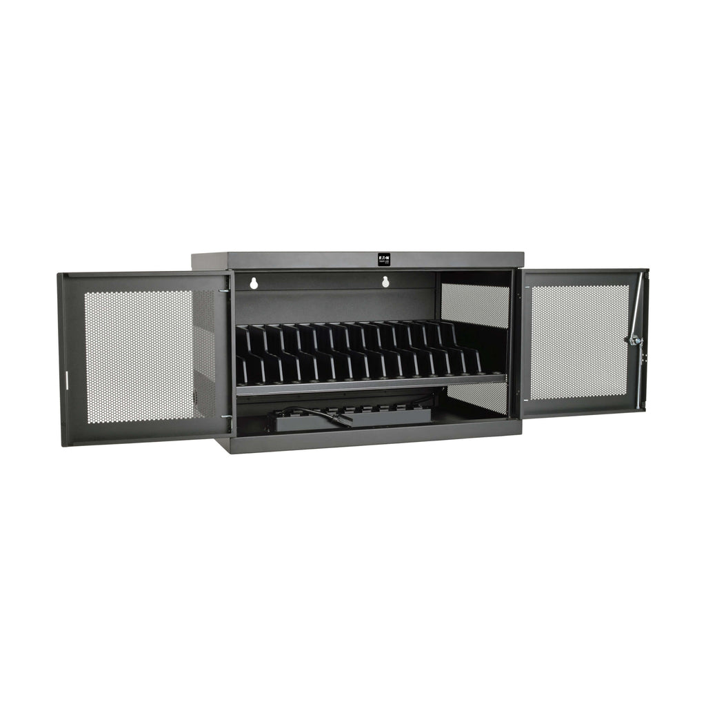 The Tripp Lite by Eaton CSC16AC is a secure, space-efficient AC charging station cabinet designed to store and charge up to 16 Chromebooks or laptops in classrooms, offices, healthcare facilities, and commercial environments. Built with durable steel construction and a black powder-coat finish, this cabinet provides long-term protection, organized cable management, and reliable AC power distribution.