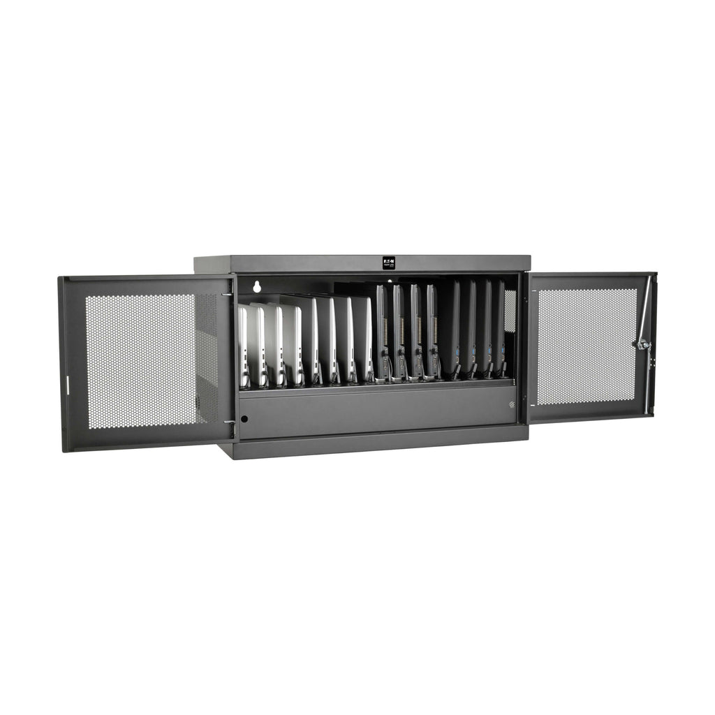 Designed for flexibility, the CSC16AC ships fully assembled and supports mounting to a wall, desk, table, counter, or floor. Locking front doors with a three-point locking mechanism help protect valuable devices from theft or tampering, making it ideal for shared or high-traffic environments.