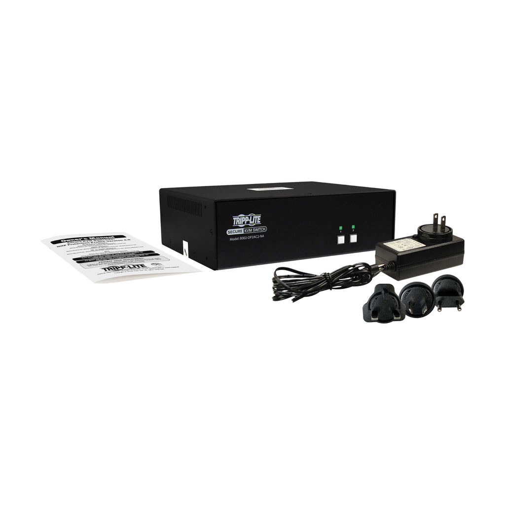 The B002-DP2AC2-N4 Secure KVM Switch provides highly secure access to two isolated computers from a single dual-monitor workstation. Designed for government, military, financial, healthcare, and enterprise environments, this NIAP PP4.0-certified KVM ensures strict data isolation between connected systems operating at different security levels.