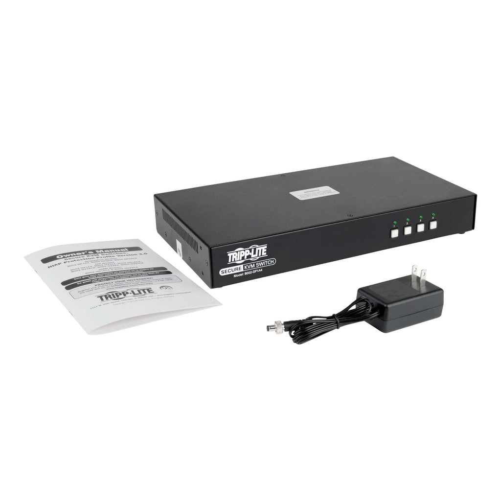 The Eaton Tripp Lite B002-DP1A4 Secure KVM Switch is designed for high-security environments that require strict data isolation between systems. Ideal for government, military, financial, and healthcare applications, this 4-port DisplayPort KVM allows a single user to control up to four isolated computers using one monitor, keyboard, and mouse.