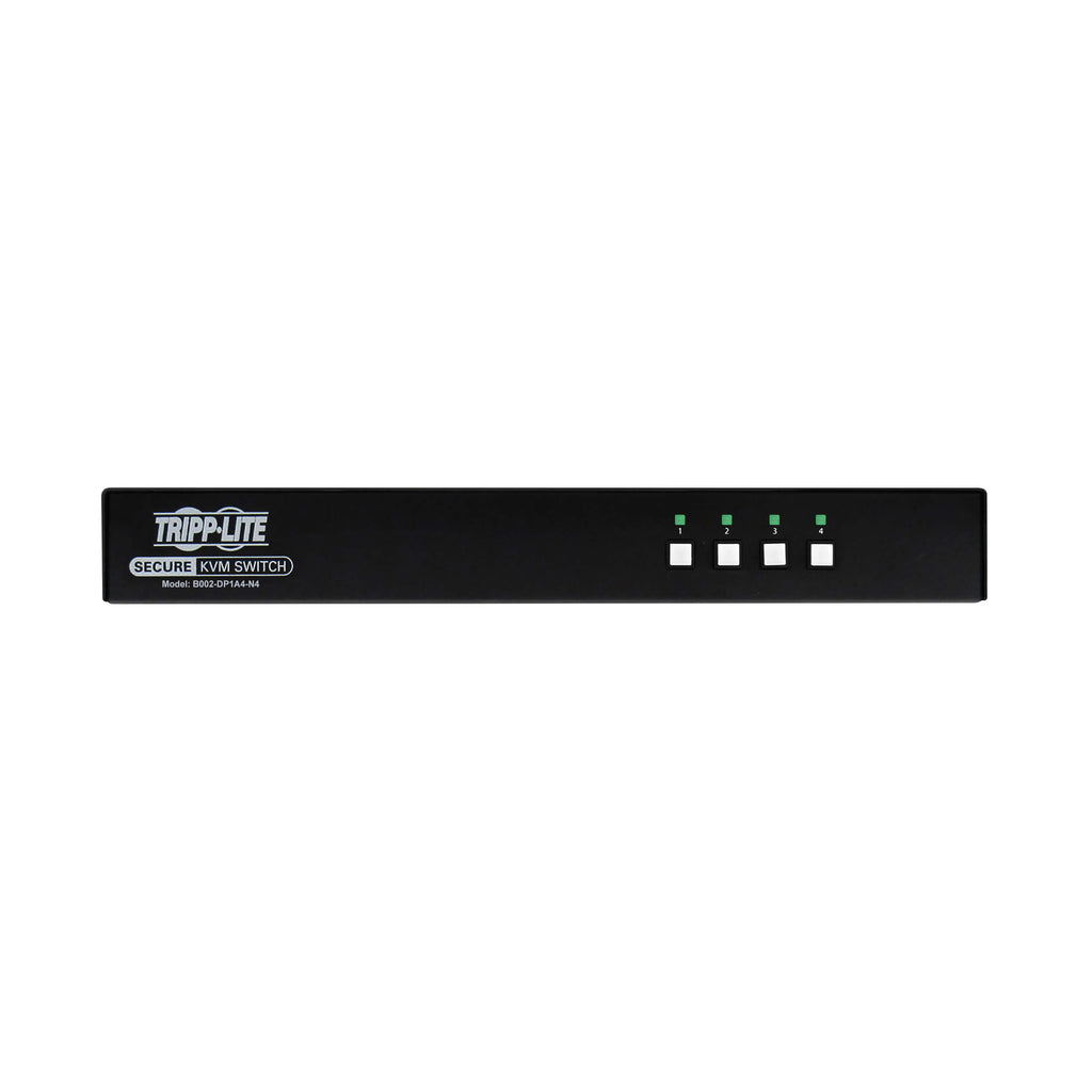 The Eaton Tripp Lite B002-DP1A4-N4 is a 4-port NIAP PP4.0-certified secure KVM switch that enables users to safely control up to four isolated computers from a single console with DisplayPort video, USB keyboard/mouse, and audio support. Designed for high-security environments such as government, defense, finance, education, and healthcare, this KVM ensures complete data separation between connected systems by providing independent processing paths and port isolation to prevent leakage or unauthorized data transfer.