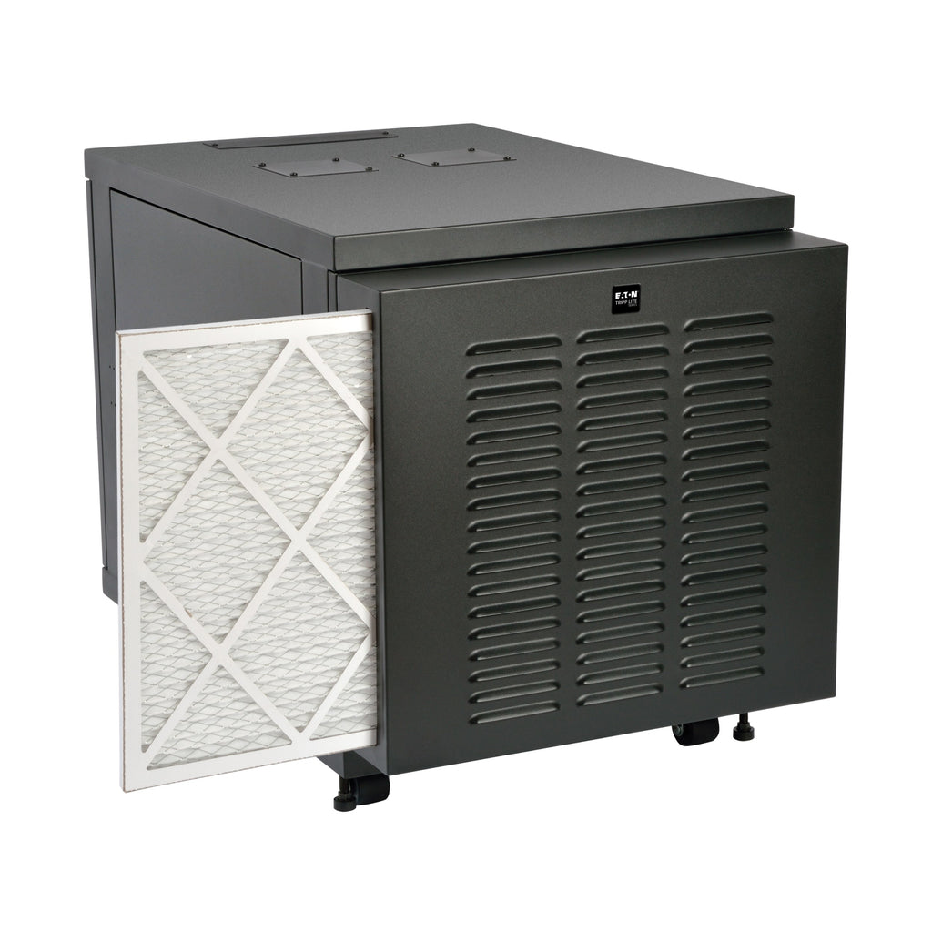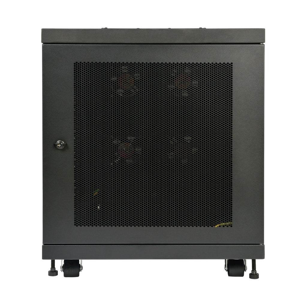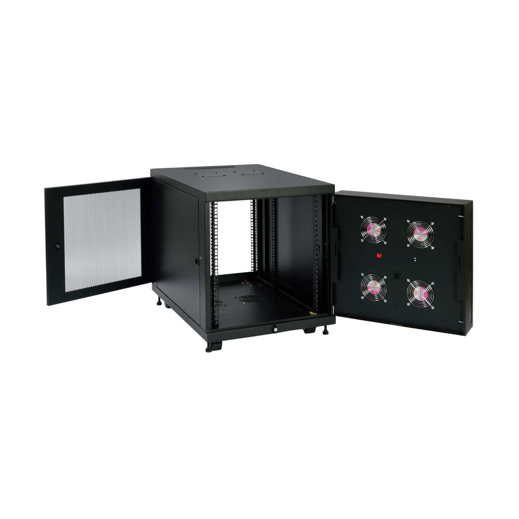 Built from heavy-duty steel with an IP54-rated, dust- and drip-resistant design, the SRX12UBFFD safeguards sensitive gear against contaminants such as dirt, lint, and oil. A pre-installed air filter and four high-performance intake fans ensure clean, cooled airflow, while locking steel doors and removable side panels provide reliable security against tampering or theft.