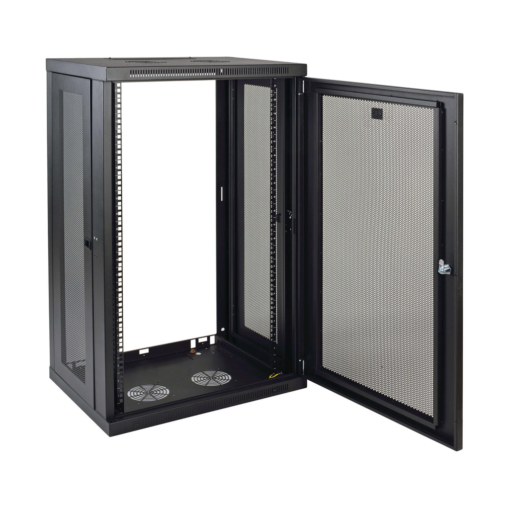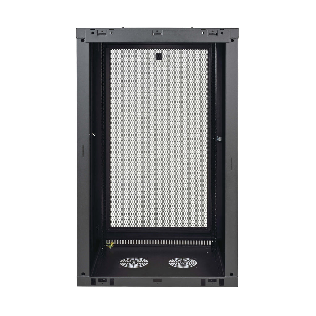 Constructed from heavy-duty steel with a durable black powder-coated finish, the SRW21U supports equipment loads up to 200 lbs. Locking front door and side panels help protect sensitive IT equipment from tampering or unauthorized access, while vented panels on all sides promote efficient airflow to maintain proper operating temperatures.