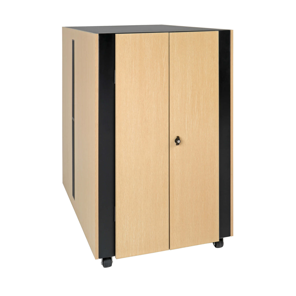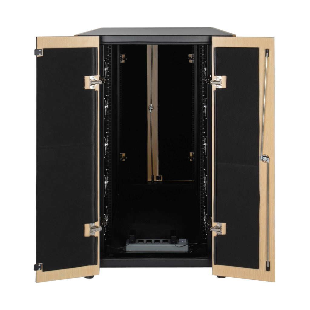 The Eaton Tripp Lite SRQ24U SmartRack 24U Soundproof Enclosure is a premium, acoustically engineered rack designed to secure, organize, and silence IT and AV equipment in noise-sensitive environments. Perfect for small offices, studios, classrooms, or retail spaces, it reduces equipment noise by up to 28 decibels, creating a quieter, more productive workspace.