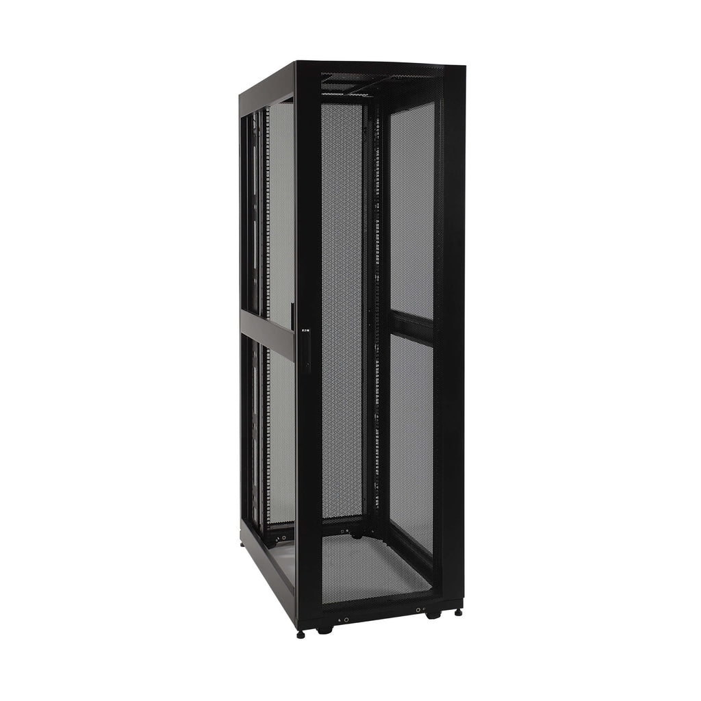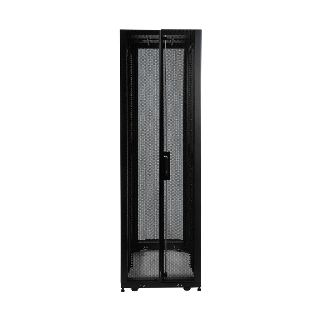 The Eaton Tripp Lite SR42UB SmartRack 42U Rack Enclosure provides a robust and secure housing solution for standard 19-inch rack-mount IT equipment in edge micro data centers, IT closets, and enterprise environments. Built from heavy-duty, powder-coated steel, it supports up to 3500 lb (1588 kg) stationary and 2250 lb (1022 kg) rolling load capacity.