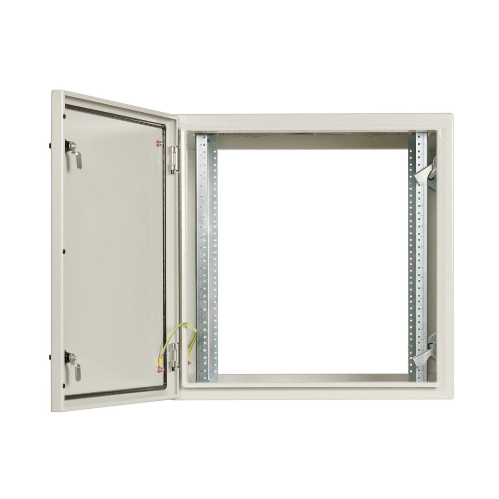 This 12U wall-mount enclosure supports up to 200 lbs (91 kg) of equipment up to 28 inches deep, such as network switches, PDUs, patch panels, or UPS systems. Its locking, gasket-sealed door ensures security and environmental protection, while the hinged design offers easy back-door access for installation and maintenance. Adjustable mounting rails and pre-assembled construction make setup straightforward and reliable.