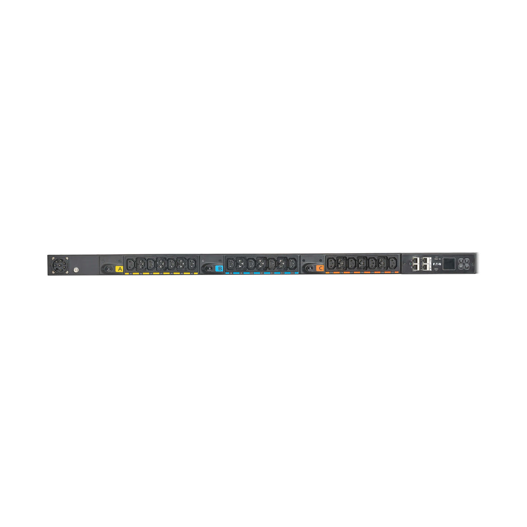 The Eaton EVMAGU23X is a Universal-Input Managed Rack PDU G4 engineered for maximum flexibility and efficiency in dynamic IT environments. Supporting both single-phase and three-phase power from 5kVA to 23kVA, it accepts 17 removable power cables with 15 plug types (sold separately). This rack PDU delivers robust outlet-level monitoring, metering, and switching across 42 outlets—24 C13 and 18 combo C39—to reduce hardware needs and streamline installations.