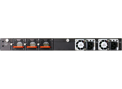 Dual redundant AC power supplies, hot-swappable fans, and port-to-power airflow ensure high availability and efficient cooling.