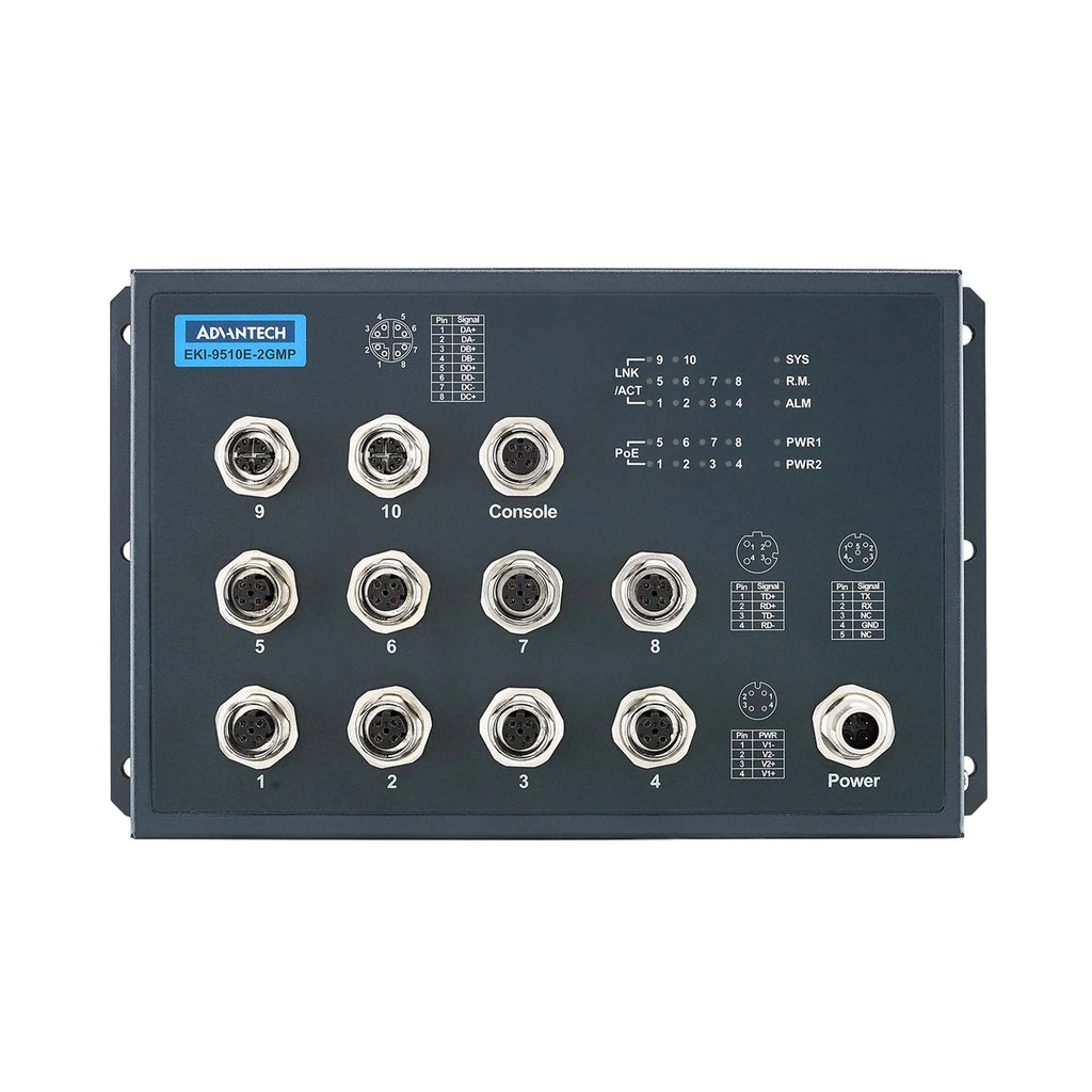 The Advantech EKI-9510E-2GMPL-AE is a rugged EN 50155 compliant managed Ethernet switch engineered for demanding railway and industrial environments. Featuring M12 connector ports for secure, vibration-resistant connectivity, this switch ensures reliable network performance even under shock, vibration, and harsh operating conditions.