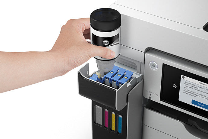 The Epson WorkForce® ST-C8000 Supertank Color MFP is designed for businesses that demand high-volume, cost-effective printing with exceptional quality. Equipped with PrecisionCore® Heat-Free technology, this all-in-one printer offers blazing-fast print speeds of up to 25 ISO ppm in both black and color, while delivering crisp, vibrant prints with DURABrite® pigment inks.