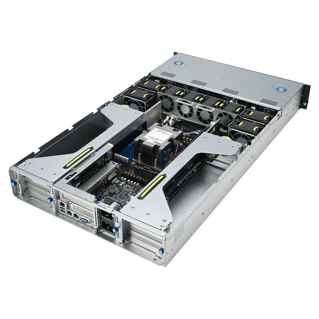 The ASUS ESC4000A-E12-26WGPT is a high-performance 2U accelerator server engineered for demanding AI and HPC workloads. Powered by a single AMD EPYC™ 9004 or 9005 series processor with AMD 3D V-Cache™ technology, it delivers exceptional compute density with support for up to four dual-slot GPUs, enabling massive parallel processing and scalability for enterprise and research applications.