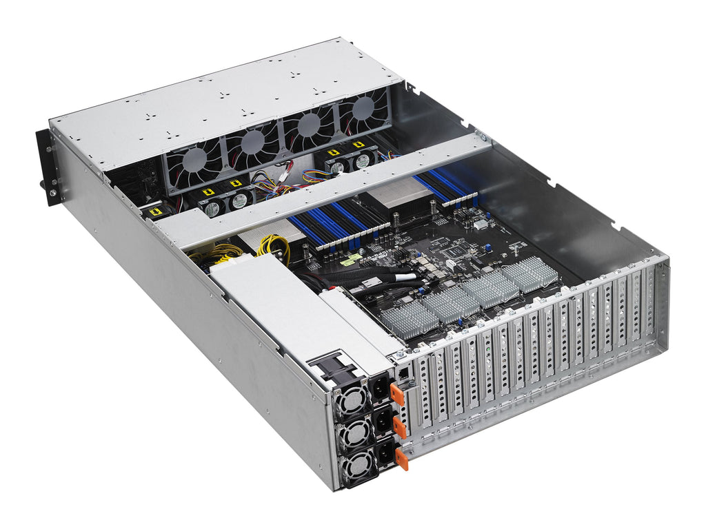 The ASUS ESC8000 G3 is a high-performance 3U rackmount server built to power modern enterprise, HPC, and GPU computing workloads. Featuring dual LGA2011-v3 sockets with Intel® C612 chipset support, this scalable 2-way platform accommodates up to two Intel Xeon processors, 24 DIMM slots for up to 1.5 TB DDR4 ECC memory, and 8 PCIe 3.0 x16 expansion slots to deliver exceptional flexibility for GPU-intensive applications.