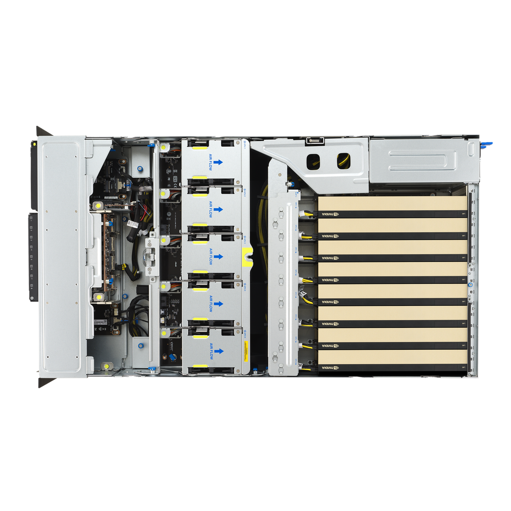 Featuring ASUS’s modular, toolless design, the server enables effortless maintenance and fast deployment, reducing service time by over 90%. It also integrates 3+1 redundant 3200W 80 PLUS Titanium PSUs, ensuring unmatched reliability and efficiency under intensive computing loads. With ASMB12-iKVM remote management, ASUS Control Center Enterprise, and flexible storage configurations supporting up to six U.2 NVMe drives, the ESC8000A-E13 delivers the power, flexibility, and stability demanded by the most advanced AI infrastructures.