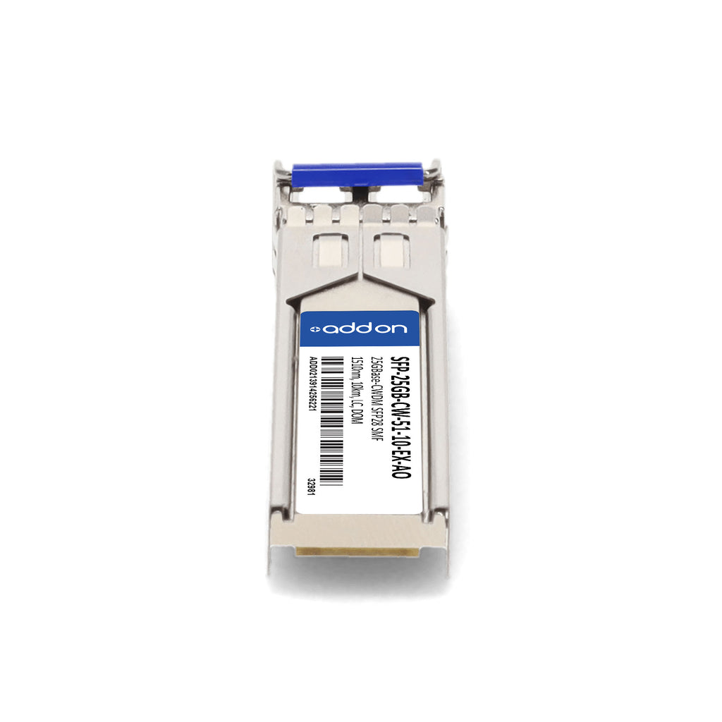 The AddOn SFP-25GB-CW-51-10-EX-AO is a 25GBase-CWDM SFP28 optical transceiver designed for high-performance data transmission over single-mode fiber (SMF) at distances up to 10km using a 1510 nm wavelength. Engineered for seamless interoperability, it is 100% compatible with Extreme Networks® equipment and meets all SFP28 MSA, SFF-8431/8432, and SFF-8472 standards.