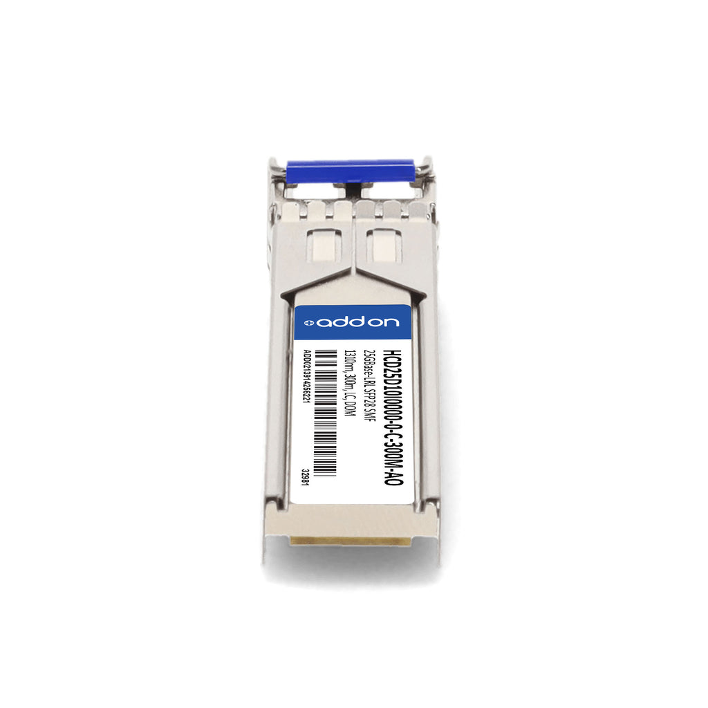 The AddOn Fujitsu® HCD25D10I0000-0-C Compatible TAA 25GBase-LRL SFP28 Transceiver is designed to deliver high-speed 25 GbE connectivity over single-mode fiber (SMF) for distances up to 300 m using a 1310 nm wavelength through an LC duplex connector. This hot-pluggable transceiver is built to meet SFF-8402 and SFF-8472 standards and is equipped with digital optical monitoring (DOM) for real-time performance tracking. Engineered for industrial environments with an operating temperature range of -40 °C to 85 °C, it ensures reliable data transmission in access and enterprise networking applications. Each unit is fully tested, uniquely serialized, and guaranteed 100% compatible with the original Fujitsu® transceiver, making it a cost-effective and dependable solution for high-performance network upgrades.