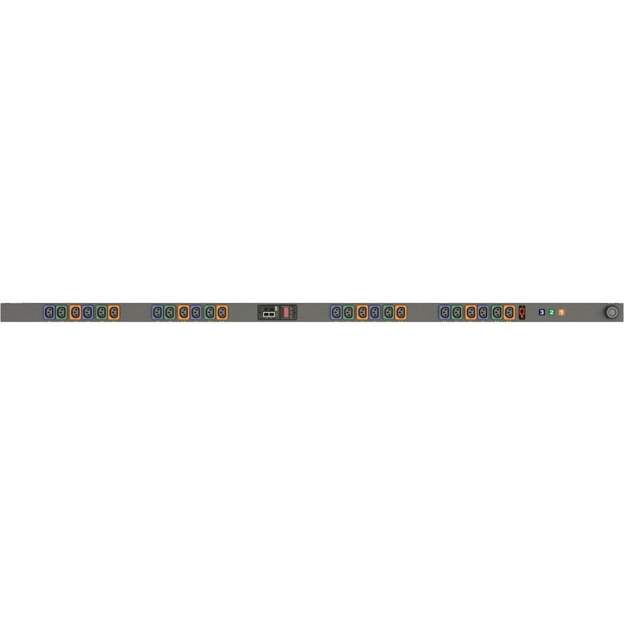 The Vertiv Geist NS30001L is a switched rack PDU offering 24 U-Lock IEC C13 outlets with secure and reliable power distribution for high-density environments. Designed for vertical (0U) mounting, it features a NEMA L21-20P plug and supports both 120V and 230V input. Equipped with IP-based monitoring and remote outlet control, this unit enables real-time power usage insights via Visible Light Communication (VLC) and the Geist Mobile App. With upgradeable hot-swap IMD technology, it supports flexible future-proofing. Ideal for enterprise data centers requiring intelligent and secure power management.