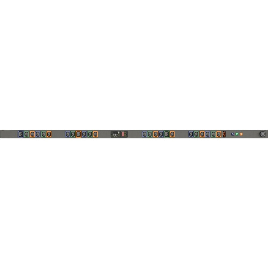 The Vertiv Geist NU30007L is a switched rack PDU delivering reliable power distribution with advanced outlet-level monitoring and control. Designed for high-density IT environments, it features 21 IEC 60320 C13 and 3 C19 U-Lock outlets, and supports up to 11kW with a NEMA L22-20P input plug. Using Visible Light Communication (VLC), real-time data is transmitted from the LED display to mobile devices via the Geist App. The upgradeable hot-swap Interchangeable Monitoring Device (IMD) ensures the unit stays current with evolving technologies. Ideal for data centers needing vertical, space-saving, zero-U mounting with IP-based management.