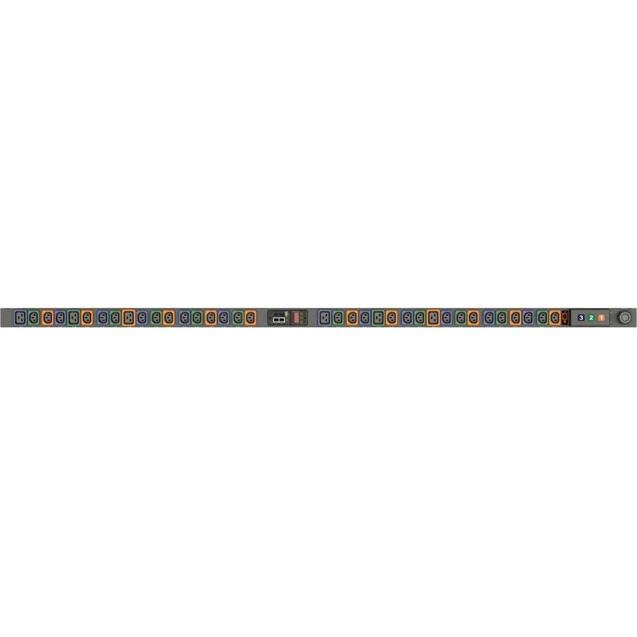 The Vertiv Geist NU30012L is a 36-outlet switched rack PDU designed for intelligent power management in high-density IT environments. Equipped with 30 x C13 and 6 x C19 locking outlets, this unit supports 3-phase input and delivers reliable 11 kW power at 230V/415V AC. It features advanced monitoring and control via Visible Light Communication (VLC), enabling seamless power data transmission to your mobile device using the Geist Mobile App. With remote switching, environmental monitoring, and hot-swappable upgrade capabilities, the NU30012L ensures scalability, operational insight, and uptime in mission-critical setups.