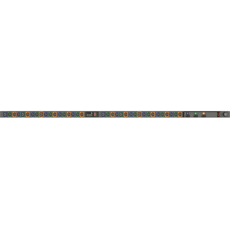 The Vertiv Geist NU30017L Switched PDU delivers advanced outlet-level control and real-time monitoring of power consumption and environmental conditions. Featuring 36 outlets (30 x IEC C13 and 6 x IEC C19) with U-Lock functionality, this 0U vertical PDU is ideal for data center rack deployments. It includes network connectivity via RJ-45 and supports modern protocols such as SNMPv3, SSH, and HTTPS. Built with Geist’s upgradeable hot-swap technology, the Interchangeable Monitoring Device (IMD) can be easily replaced to keep pace with evolving monitoring requirements. Designed for flexible rack mounting with robust NEMA L21-30P input and a total output capacity of 8600W at 208V AC.