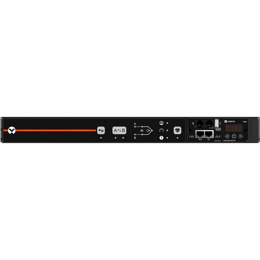 The Vertiv Geist VA4G8100 is a high-performance 12-outlet Rack PDU (rPDU) equipped with an Auto Transfer Switch (ATS) and monitoring capabilities, delivering redundant power to single-corded equipment with sub-8ms transfer time. Featuring 12 combination C13/C19 outlets and a 1P+N+E (IP44) plug, it is ideal for mission-critical environments requiring reliable, rack-mountable power distribution.