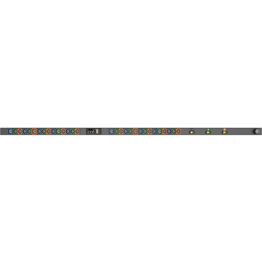 The Vertiv Geist rPDU MN03E4W1-30PN68-4CS15A0A10-S-A is a high-performance, vertically mountable monitored power distribution unit (PDU) engineered for three-phase applications. With 30 outlets—comprising 24 x IEC C13 and 6 x IEC C19 locking receptacles—this unit offers reliable and scalable power distribution to critical IT equipment in server racks and data centers.