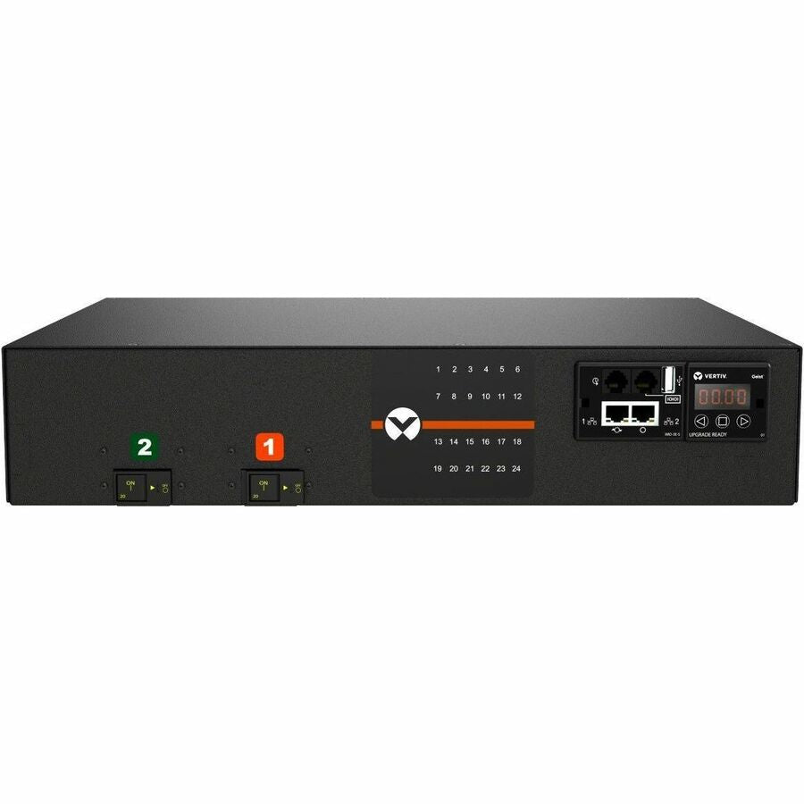 The Vertiv Geist rPDU MNR3EDR6-24CF18-3TL14A0H10-S offers reliable and intelligent power distribution with 24 combination C13/C19 outlets in a monitored format. Designed for rack-mount deployment, this 2U horizontal PDU features a NEMA L14-30P plug, robust environmental monitoring capabilities, and advanced network management via SNMP, HTTPS, SSH, and more. The unit supports outlet-level EC monitoring and is upgradeable to meet evolving infrastructure demands. With 10 ft cord length and built-in overcurrent protection, it is ideal for mission-critical IT environments requiring power visibility, scalability, and fault tolerance.
