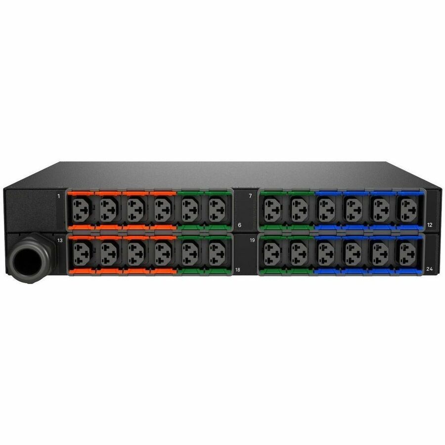 The Vertiv Geist MNU3EDR6-24CF18-3TL21A0H10-S is a Switched Outlet Level Monitored rPDU that delivers reliable and intelligent power distribution for critical IT equipment. Featuring 24 Combination C13/C19 outlets and a NEMA L21-30P plug, this 2U horizontal rack-mount unit supports advanced outlet-level control, remote power monitoring, and hot-swappable upgradeability. Integrated environmental monitoring and a robust management suite ensure optimal uptime and energy efficiency. Ideal for data centers and enterprise IT environments.