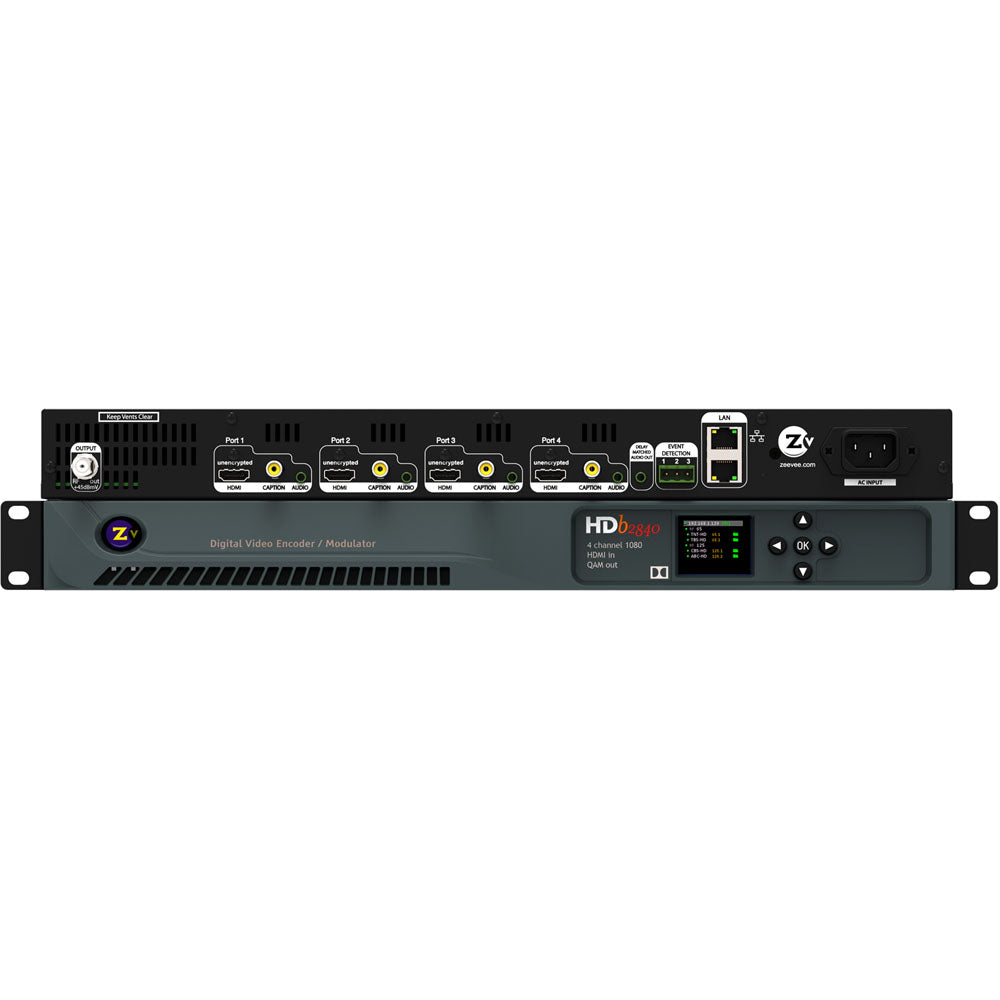 Important Notice: The HDMI input on ZeeVee products is designed to accept unencrypted video, typically from a digital signage player, video camera, or other self-generated content. Our HDMI input may not work with Apple products (such as Macs), Blu-ray players, satellite boxes, or cable boxes, as they are typically encrypted. The HDb2840 is a 4-channel HD modulator with unencrypted HDMI inputs for our best video quality yet! PLUS you get a bonus 5th Channel! Save an MPEG-2 video file to the internal memory and use it as an additional signage channel! Ideal Uses: