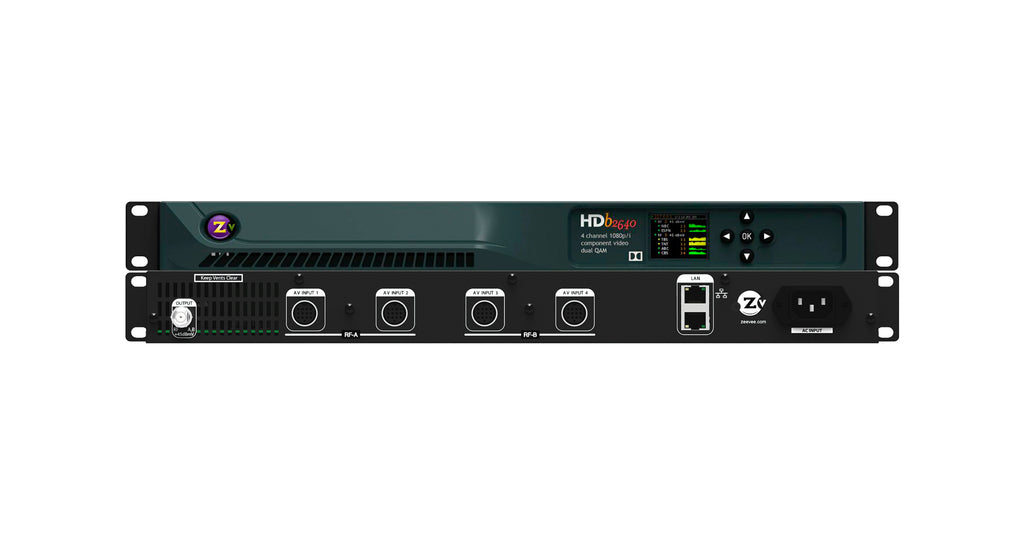 The ZeeVee HDbridge 2000 HDb2640 Video Encoder is a powerful 4-channel HD MPEG2 digital video encoder and QAM modulator designed for high-density video distribution. It converts component or VGA sources into RF signals compatible with HDTV digital tuners, enabling seamless delivery of up to 1080p resolution video to an unlimited number of displays over coaxial cable. Ideal for venues like sports bars, houses of worship, and digital signage networks, it eliminates the need for traditional AV matrix switchers by allowing channel selection directly on each display. Multiple units can be combined to support over 100 channels, creating a scalable headend solution. The encoder supports EIA/CEA-608 closed captioning and offers advanced management through Maestro software over LAN, complemented by an intuitive color LCD front panel for direct control and monitoring. With a high 45 dBmV RF output and adjustable audio delay, the HDbridge 2000 ensures reliable, high-quality video and audio distribution across extensive installations, making it a trusted choice for stadiums, entertainment venues, and broadcast environments.