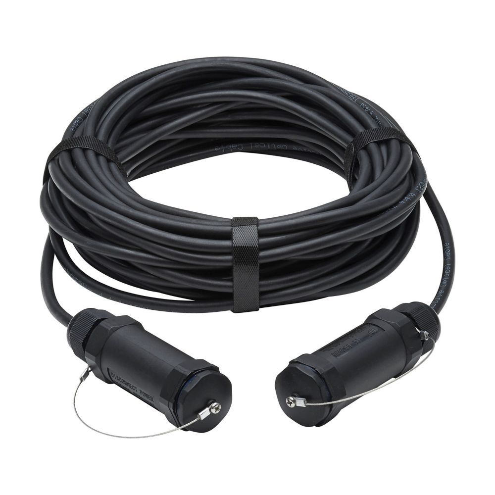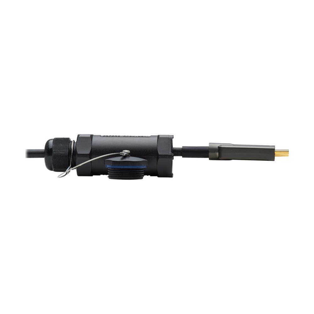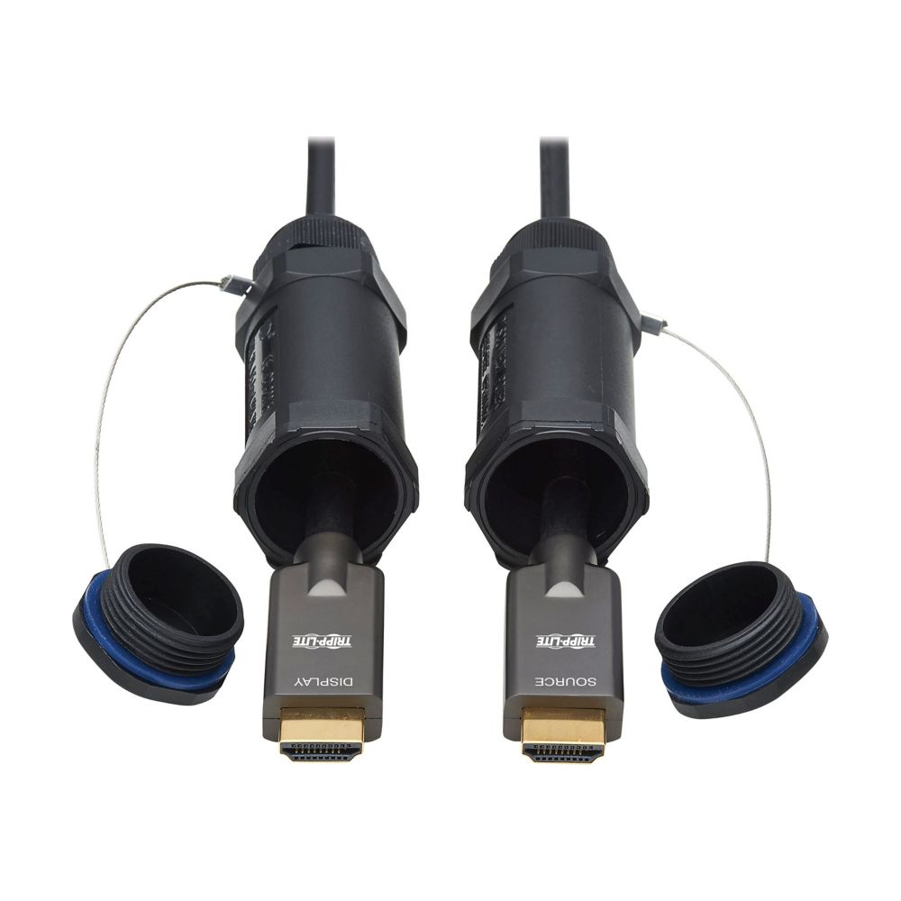 The Tripp Lite P568FA-100M-WR is a high-speed armored HDMI Active Optical Cable (AOC) designed for long-distance, industrial, and outdoor 4K video installations. Using fiber-optic technology, this cable delivers uncompressed 4K @ 60Hz video with HDR and 4:4:4 chroma over distances up to 100 meters with zero signal loss or EMI/RFI interference.