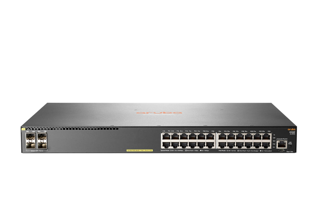 The HPE Aruba Networking 2930F 24G PoE+ 4SFP+ Switch is purpose-built for the digital workplace. This high-performance Layer 3 access switch combines intelligent power management, strong security, and simplified management. It features 24 x 10/100/1000 PoE+ ports and 4 x 1/10 GbE SFP+ uplink ports, delivering up to 370W of PoE+ power for IP phones, cameras, and access points. With support for Virtual Switching Framework (VSF), advanced Layer 3 routing, and integration with HPE Aruba Networking tools like ClearPass, AirWave, and Central, the 2930F is ideal for branch offices, SMBs, and enterprise edge deployments.
