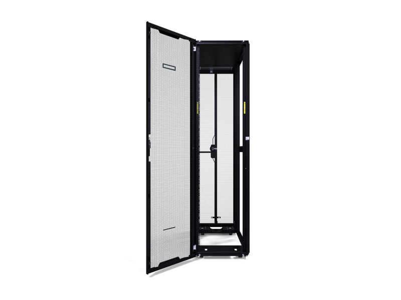 Enhanced with flush-mount side panels, bristle-covered cable access slots, and 80% door perforation for superior airflow, this rack simplifies cable routing while keeping hot air isolated. Integrated EIA rails, tool-less rear cable management, and compatibility with HPE servers, networking, and storage devices ensure this rack meets the demanding needs of modern data centers.