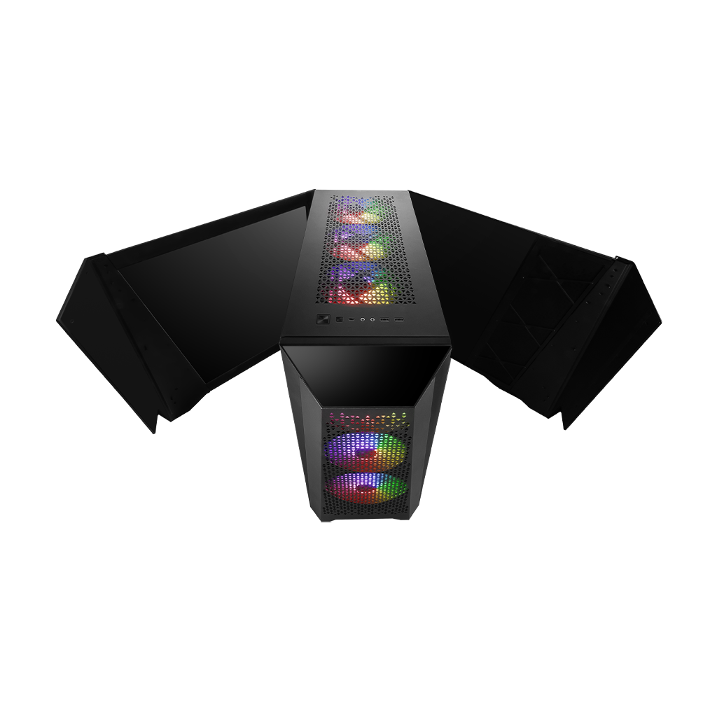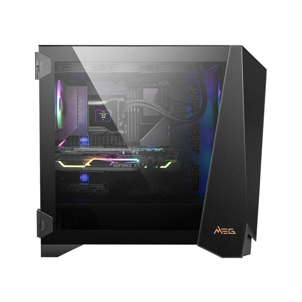 Designed with expandability and reliability in mind, the MSI Infinite ZS features a robust B840 motherboard, 80+ Gold certified power supply, immersive 7.1 HD audio, and efficient 360mm liquid cooling—delivering power, stability, and performance in a refined gaming chassis.