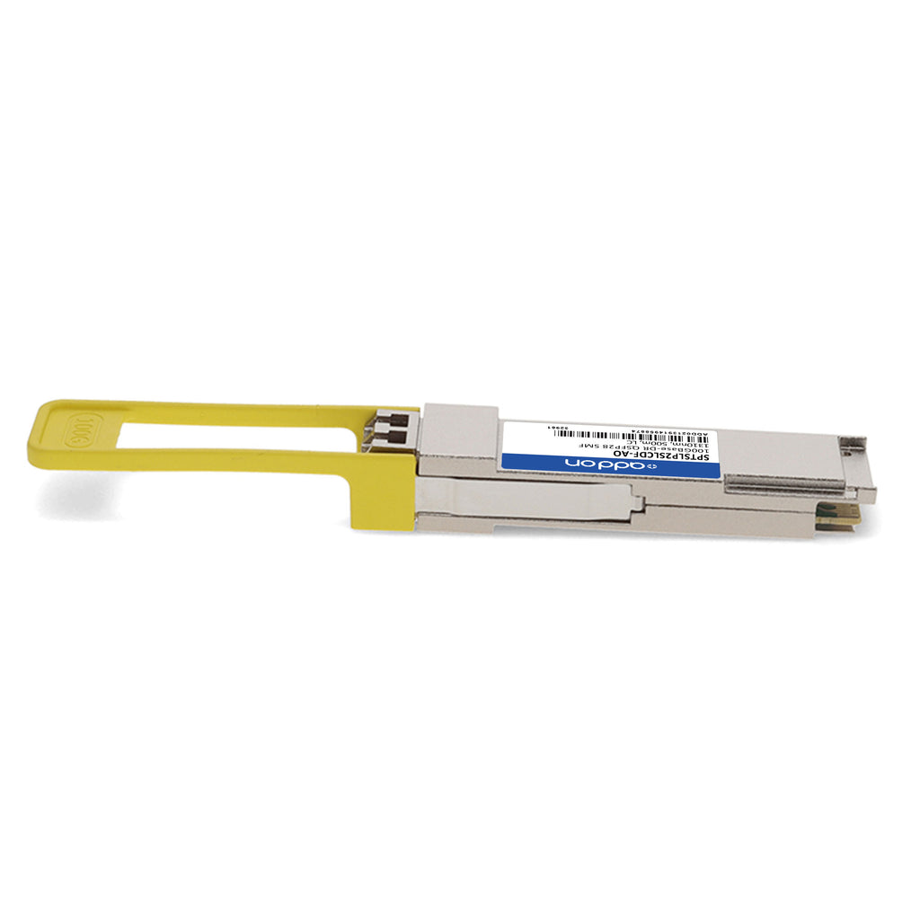The AddOn Intel® SPTSLP2SLCDF-AO is a 100GBase-DR QSFP28 single lambda transceiver designed for high-performance, short-reach data center and enterprise network applications. It delivers up to 100Gbps throughput over single-mode fiber (SMF) with a reach of up to 500 meters using a 1310nm wavelength and duplex LC connector.