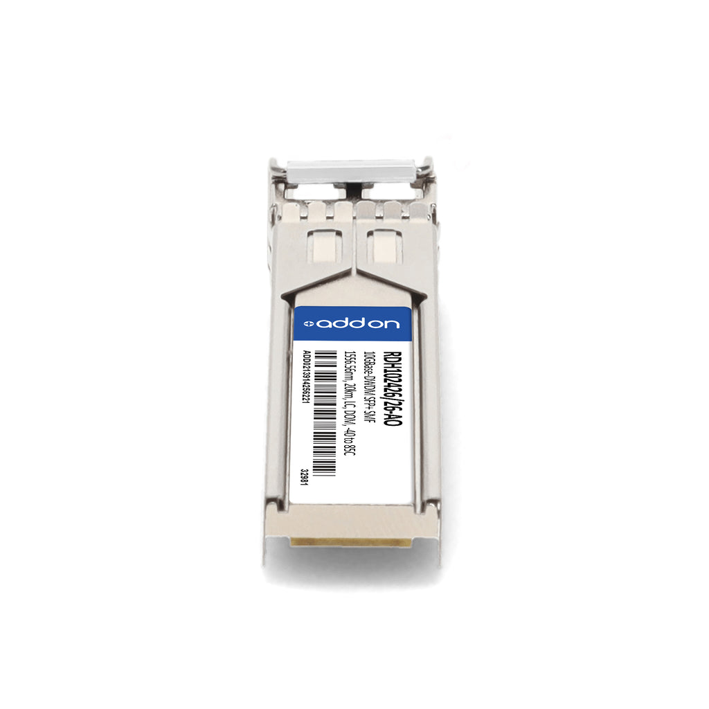 The AddOn LG-Ericsson® RDH102426/26-AO is a high-performance, TAA-compliant 10GBase-DWDM SFP+ transceiver designed for reliable, long-distance optical communication over single-mode fiber (SMF) up to 20km. Operating at a center wavelength of 1556.55nm within the 100GHz DWDM grid, it supports 10 Gigabit Ethernet and 8G/10G Fibre Channel applications, making it ideal for access, enterprise, and metro network deployments.