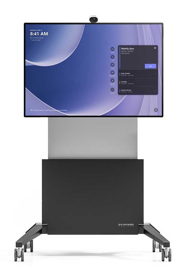 Achieve seamless collaboration and mobility with the Salamander FPS2/EL/MS/GG Electric Lift Mobile Stand, expertly engineered for the Microsoft Surface Hub 2S 50″. Designed to enhance creativity and productivity in modern meeting spaces, this ADA-compliant stand features motorized electric lift control, superior mobility, and an ergonomic design for optimal viewing comfort. The FPS2 combines durable U.S.-made steel construction with a sleek graphite gray finish, fully concealed cable management, and precision engineering for smooth height adjustment. Integrated handles and heavy-duty casters enable effortless movement between rooms, making it ideal for corporate, educational, and collaborative environments.