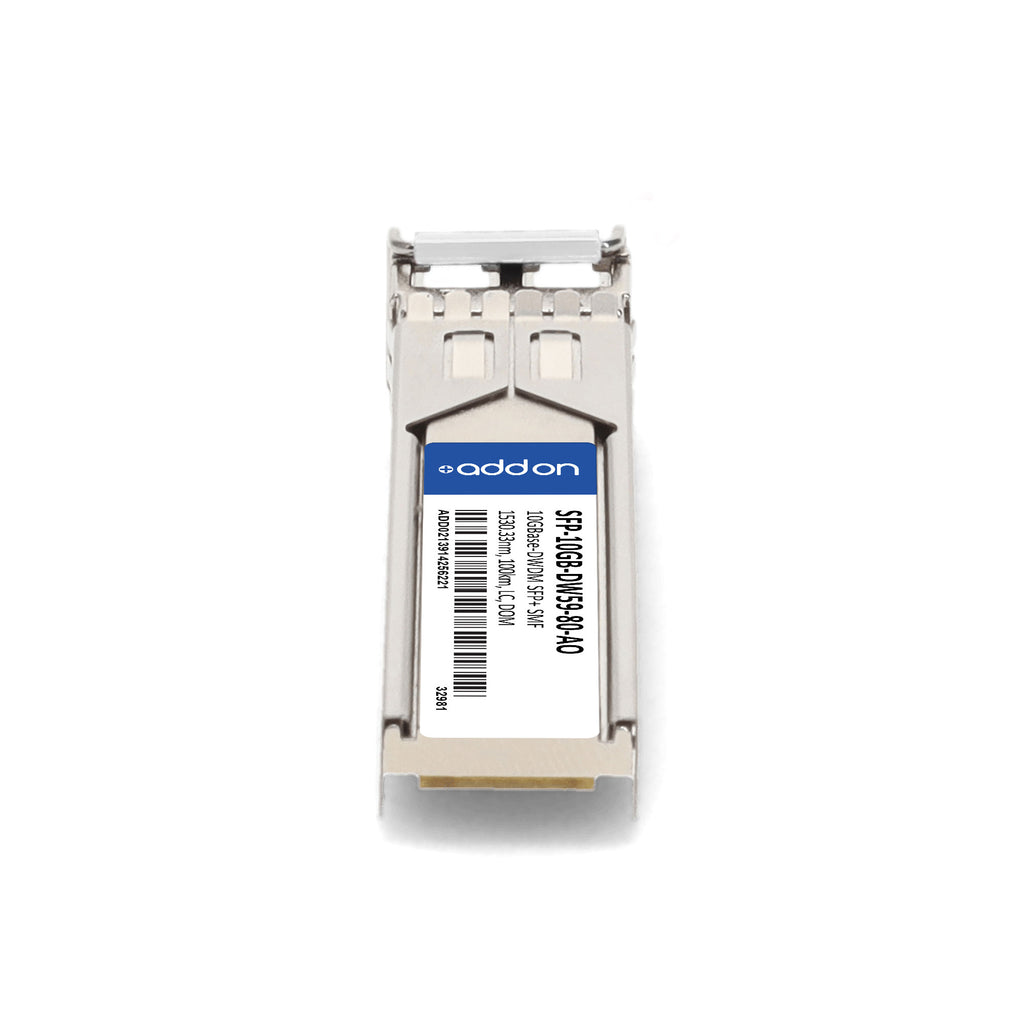 The AddOn SFP-10GB-DW59-80-AO is a high-performance MSA and TAA compliant 10GBase-DWDM SFP+ transceiver designed for long-reach optical networking. Operating at a wavelength of 1530.33nm (ITU Channel 59), it delivers reliable data transmission up to 80km over single-mode fiber (SMF) using a standard duplex LC connector.