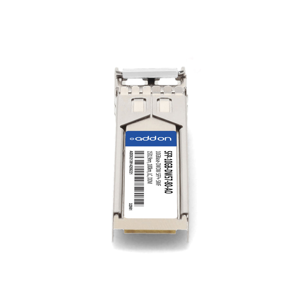 The AddOn SFP-10GB-DW57-80-AO is an MSA and TAA compliant 10GBase-DWDM SFP+ transceiver designed for high-performance data transmission up to 80km over single-mode fiber (SMF). Operating at a 1531.90nm wavelength (ITU Channel 57), this transceiver features a temperature-stabilized EML transmitter and APD receiver to ensure reliable long-distance connectivity.