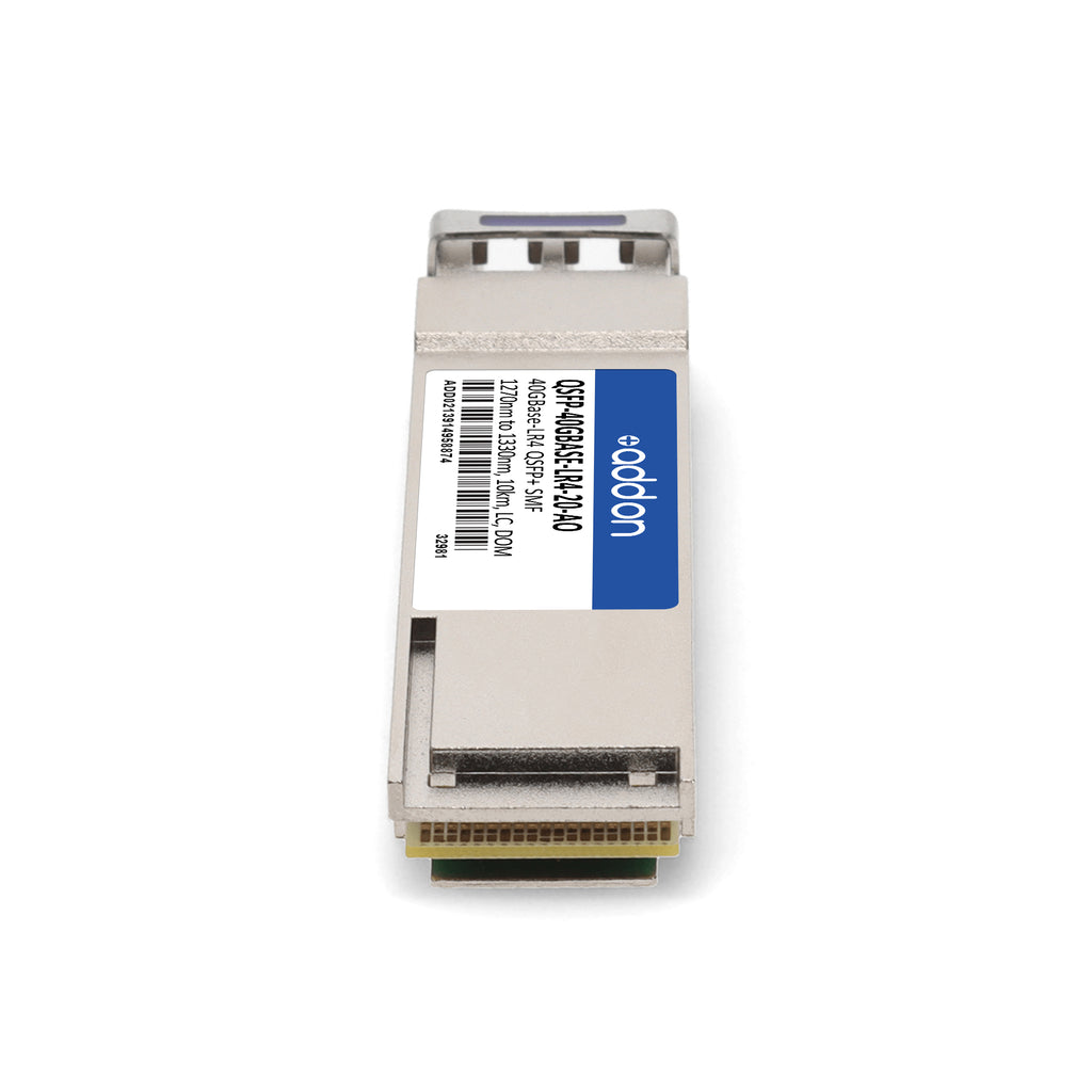 Built to IEEE 802.3ba and SFF-8436 specifications, it features an LC duplex connector and supports Digital Optical Monitoring (DOM) for real-time diagnostics of optical performance. The module is fully TAA compliant and undergoes rigorous testing for guaranteed interoperability with OEM platforms. With its advanced optical design, low power consumption, and Class 1 laser safety certification, the QSFP-40GBASE-LR4-20-AO offers a dependable and scalable solution for next-generation network deployments.