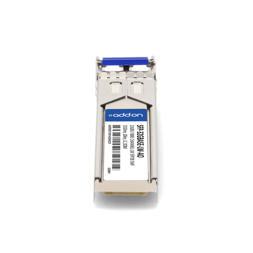 The AddOn SFP-32GBASE-LW-AO is an MSA and TAA compliant SFP+ transceiver designed to deliver reliable 32G Fibre Channel connectivity over single-mode fiber (SMF) with a reach of up to 10km. Operating at a 1310nm wavelength and equipped with a duplex LC connector, this hot-pluggable module is built for high-performance enterprise and data center storage networks.