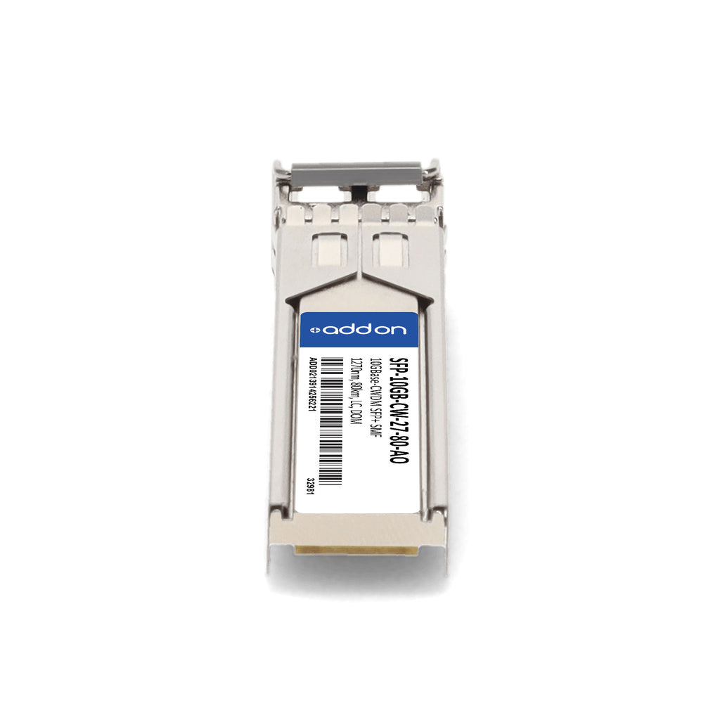 The AddOn SFP-10GB-CW-27-80-AO is an MSA and TAA compliant 10GBase-CWDM SFP+ transceiver designed for high-performance optical networking. Operating at a 1270nm wavelength over single-mode fiber (SMF), it supports data transmission up to 80km via a duplex LC connector.
