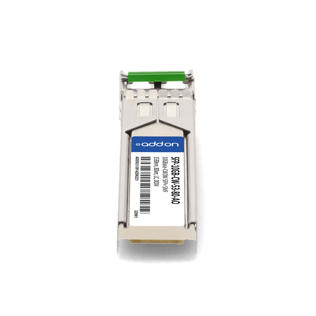 The AddOn SFP-10GB-CW-53-80-AO is a high-performance, MSA and TAA compliant 10GBase-CWDM SFP+ transceiver designed for reliable long-distance connectivity. Operating over single-mode fiber (SMF), it supports up to 80km transmission at a 1530nm wavelength via an LC connector.