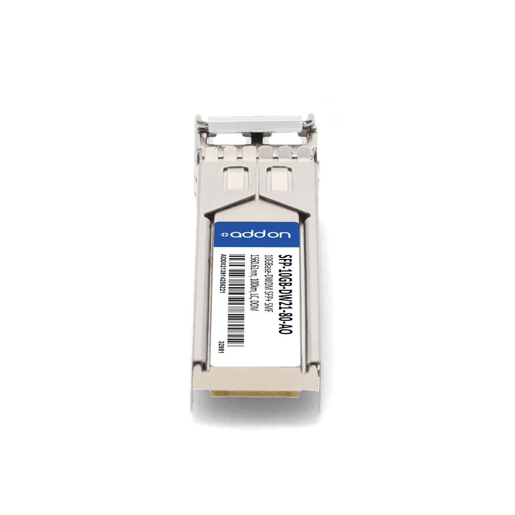 The AddOn SFP-10GB-DW21-80-AO is a high-performance, MSA and TAA compliant 10GBase-DWDM SFP+ transceiver designed for reliable long-haul networking. Operating on the C-Band DW21 channel at 1560.61nm, it delivers up to 80km transmission over single-mode fiber (SMF) via a duplex LC connector.