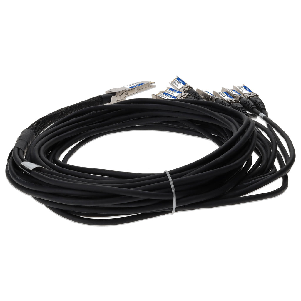 The AddOn QSFPDD-8SFP28-PDAC1M-AO is an MSA and TAA compliant 200GBase-CU QSFP-DD to 8xSFP28 direct attach copper (DAC) cable designed for high-speed, low-latency connections between switches, routers, and servers. Operating over a passive twinax copper medium with a maximum reach of 1 meter, this cable offers reliable 200Gbps connectivity by splitting a single QSFP-DD port into eight 25Gbps SFP28 lanes. It is ideal for high-performance computing, data centers, and enterprise networking applications.