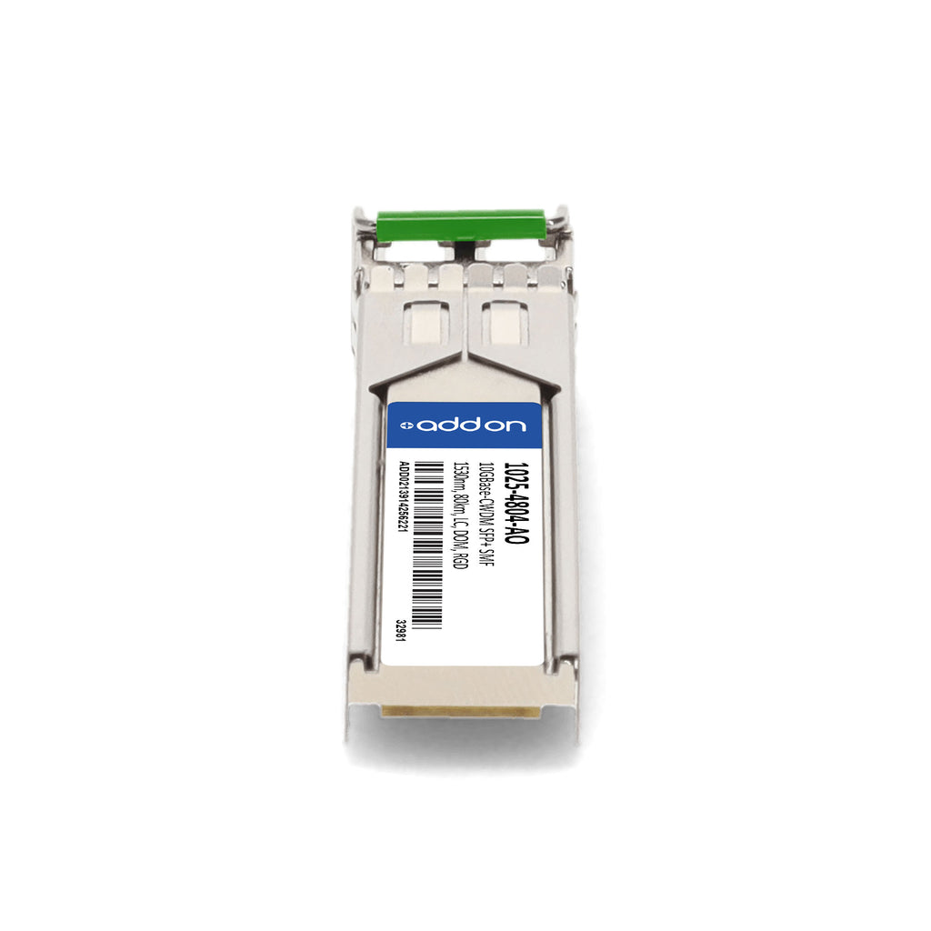 The AddOn Optelian® 1025-4804 compatible SFP+ transceiver delivers reliable 10GBase-CWDM throughput up to 80km over single-mode fiber (SMF) using a 1530nm wavelength via an LC duplex connector. Built to meet SFF-8432 and SFF-8472 standards, this hot-swappable module is designed for 8x/10x Fibre Channel, 10G Ethernet over CWDM, Access/Metro/Enterprise networking, and mobile fronthaul (CPRI/OBSAI) applications.